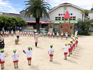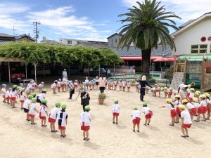 お部屋に入った後は朝のお歌やご挨拶、製作をしているクラスもありました!