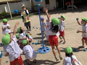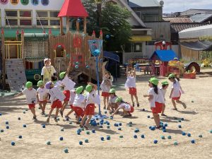 さぁ、お片付けして何をするのかと思ったら・・・特別に?!玉入れ!
