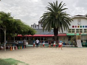 午後の園庭、お空には鱗雲が!