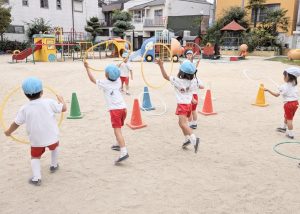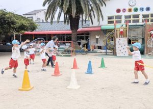 先生と輪投げ遊びをするゆり組さん(^O^)/