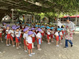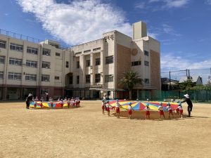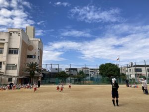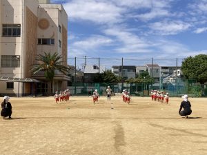 本番の会場、千本小学校さんの校庭をお借りして練習しました!