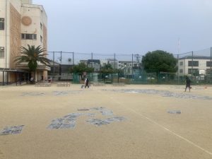 10/5(日)、早朝から校庭整備をしていた職員一同・・・