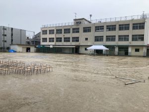 この調子だったら大丈夫そう!?と安心したのも束の間!15分の雨であっという間に校庭はこんな状態に(*_*)