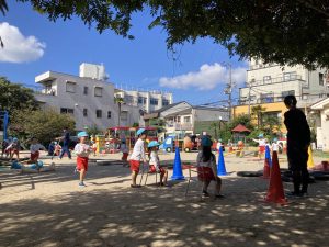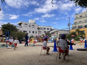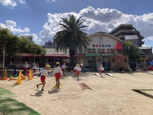 今日の園庭は賑やか!子ども達と先生の元気な声が響きました(*^^*)