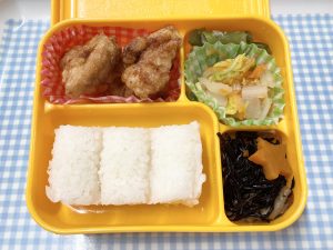 今日はドキドキわくわく、初めての富喜屋さんのお弁当給食です!