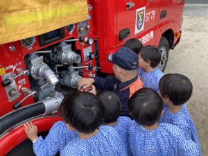 お話をして頂いた後は、楽しみにしていた消防車の見学タイム!