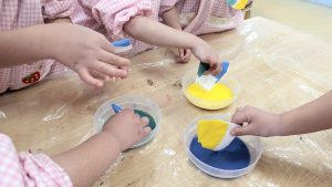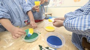 今日の講堂での劇練習は、他のクラスと見せあいっこしていました!