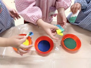 今朝は幼稚園の遊具にも少し雪が残っていましたよ!