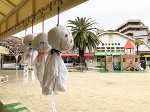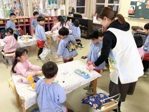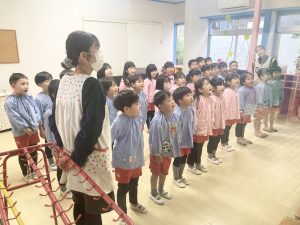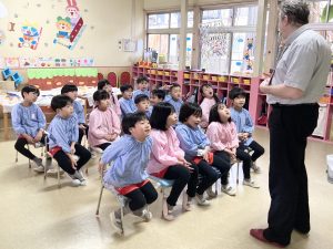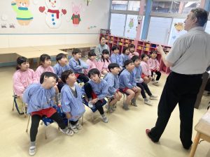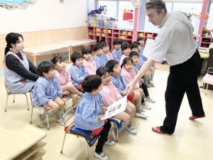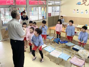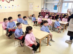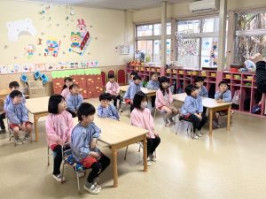 英語以外の時間、年長組さんは先生からのお話を聞いて・・・