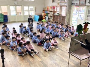 今日は講堂で2月生まれのお友達のお誕生日会がありました!