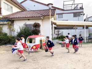 キャーキャー!とっても楽しそうなお声が園庭に響きました(*^▽^*)