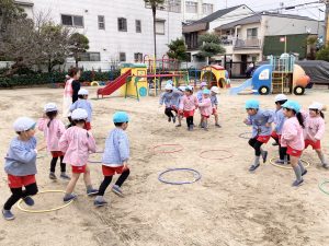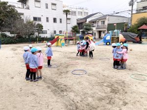 その後は園庭でフープを使って、みんなでゲームをしていました!