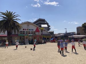 今日は朝から元気にお外遊び!