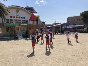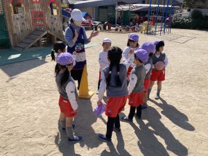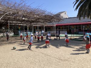 お外遊び後半、ゆり組さんはドッチボール