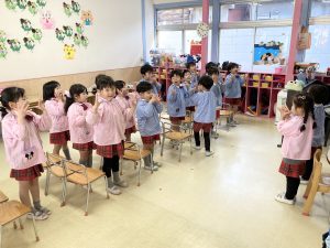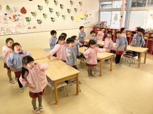 お部屋では朝の流れや修了式の練習をしました!