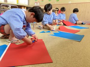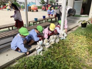 草むしりをしていた園長先生のお手伝いをしてくれるお友達(*^_^*)